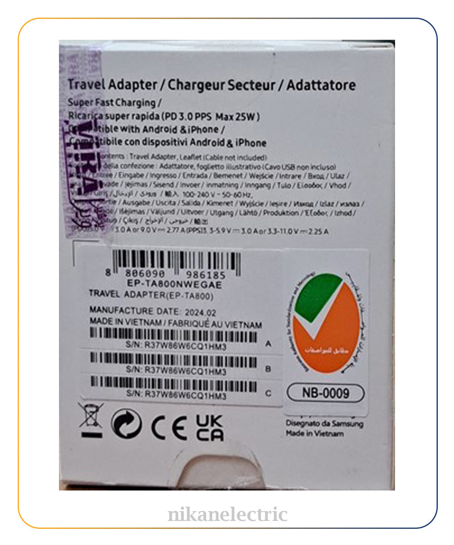 شما عزیزان به سادگی می توانید آداپتور 25 وات سامسونگ، آداپتور ۲۵ وات سامسونگ، شارژر ۲۵ وات USB-C، شارژر ۳ پین سامسونگ، آداپتور EP-TA800، Samsung 25W PD Charger،شارژ سریع سامسونگ 25 وات و… را از نیکان الکتریک تهیه کنید و درب منزلتان دریافت کنید. پشتیبانهای ما به صورت ۲۴ ساعته آماده پاسخگویی و خدمات رسانی به شما عزیزان هستند. برای مشاوره تخصصی و ثبت سفارش، کارشناسان نیکان الکتریک آماده پاسخگویی هستند.