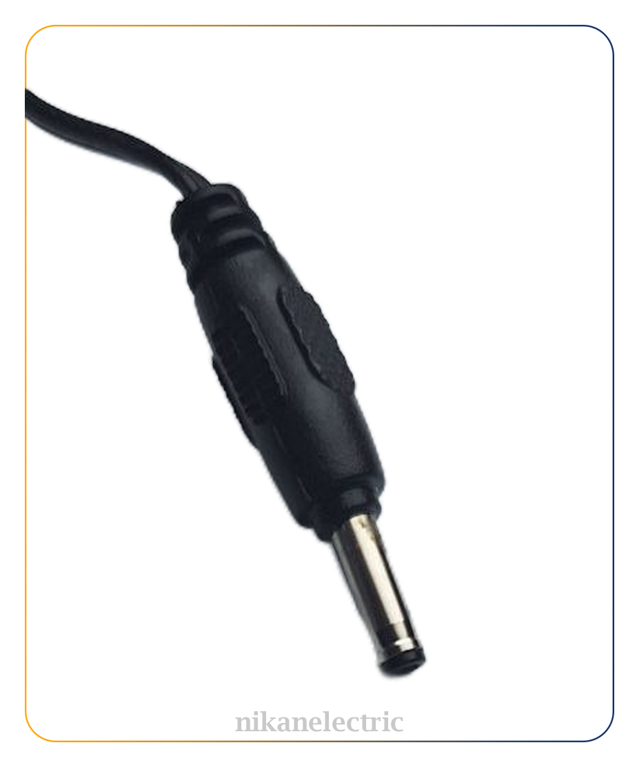 این آداپتور از استاندارد رایج فیش سوزنی (DC جک) پشتیبانی میکند که معمولاً دارای ابعاد بیرونی ۳.۵ میلیمتر و داخلی ۱.۳۵ میلیمتر است.